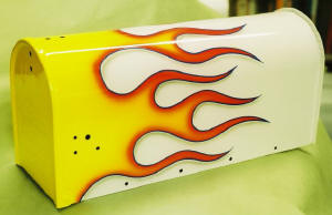 Welcome to our new products page. We are still working out the online ordering and payment , but feel free to contact us or call 860-589-1984 to order by phone. Prices listed are retail and wholesale prices are available on request. All items are airbrushed, pinstriped and cleared (where necessary) individually, so minor differences may occur form pictured item. Custom colors available on pinstriping designs. Call for details. Shipping charges and CT sales tax (where applicable) are not included in listed retail price. |